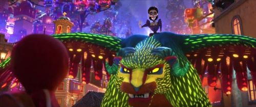 I feel like the images in this post should give you one explanation: the movie is beautiful. The CGI is gorgeous and used to great effect on Day of the Dead symbols such as the marigolds that festoon the ofrendas (and lead the way into the land of the dead), and the alebrijes/spirit guides.
